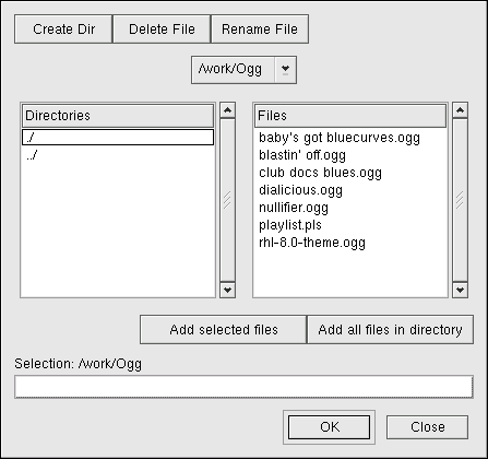 In Figure 8-4, you see that there are several files to choose from. The files that end in .ogg are Ogg Vorbis files, a popular new audio file format, while the .pls file is an audio playlist file. You can use XMMS to add audio files into a list and then save it as a playlist. This can be convenient if you have several audio files and you want to categorize them (for example, by genre or artist). Highlight the file you wish to play (if you have multiple files, click and hold the mouse button and drag it over all of the files you want to open) and click OK. Notice that XMMS begins to play your audio files immediately. To adjust the volume click and drag the volume slider (the long slider above the Open button) to the left to lower the volume or to the right to increase it like a CD player. There are also buttons to stop, pause, and skip (backward and forward) your audio files.