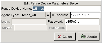 To create an entry for a fence device, click the Add a Fence Device button in the Fence Device Specifications section. A window appears similar to Figure C-6.