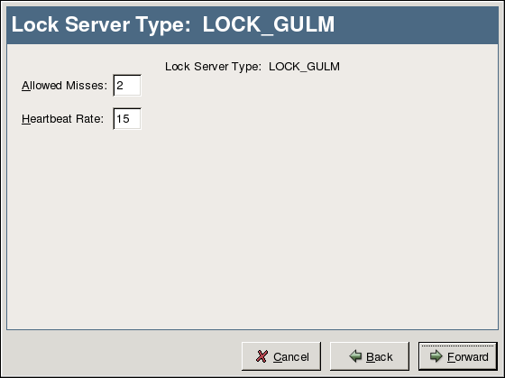 After configuring the LOCK_GULM parameters, click Forward to continue.