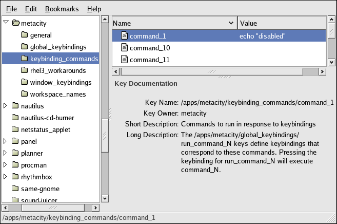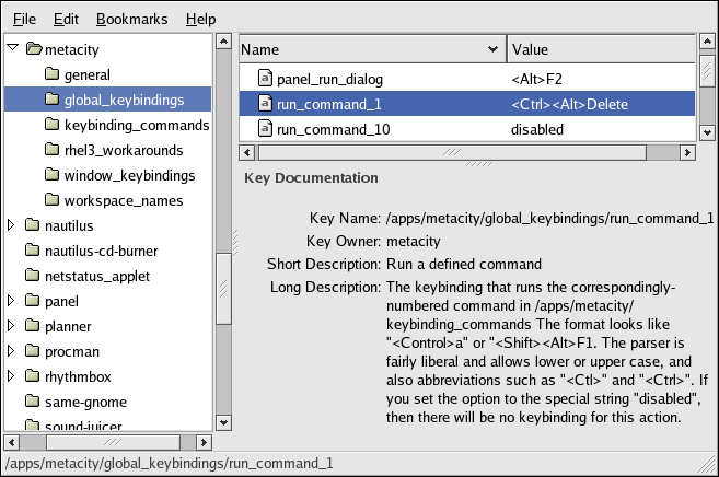 1. Note in Figure 4-2 that the default global keybinding for [Ctrl]-[Alt]-[Delete] is attached to the gconf key run_command_1.